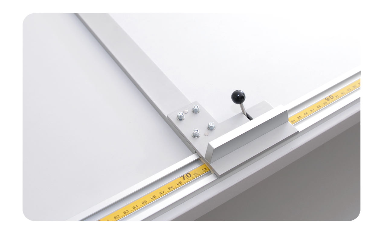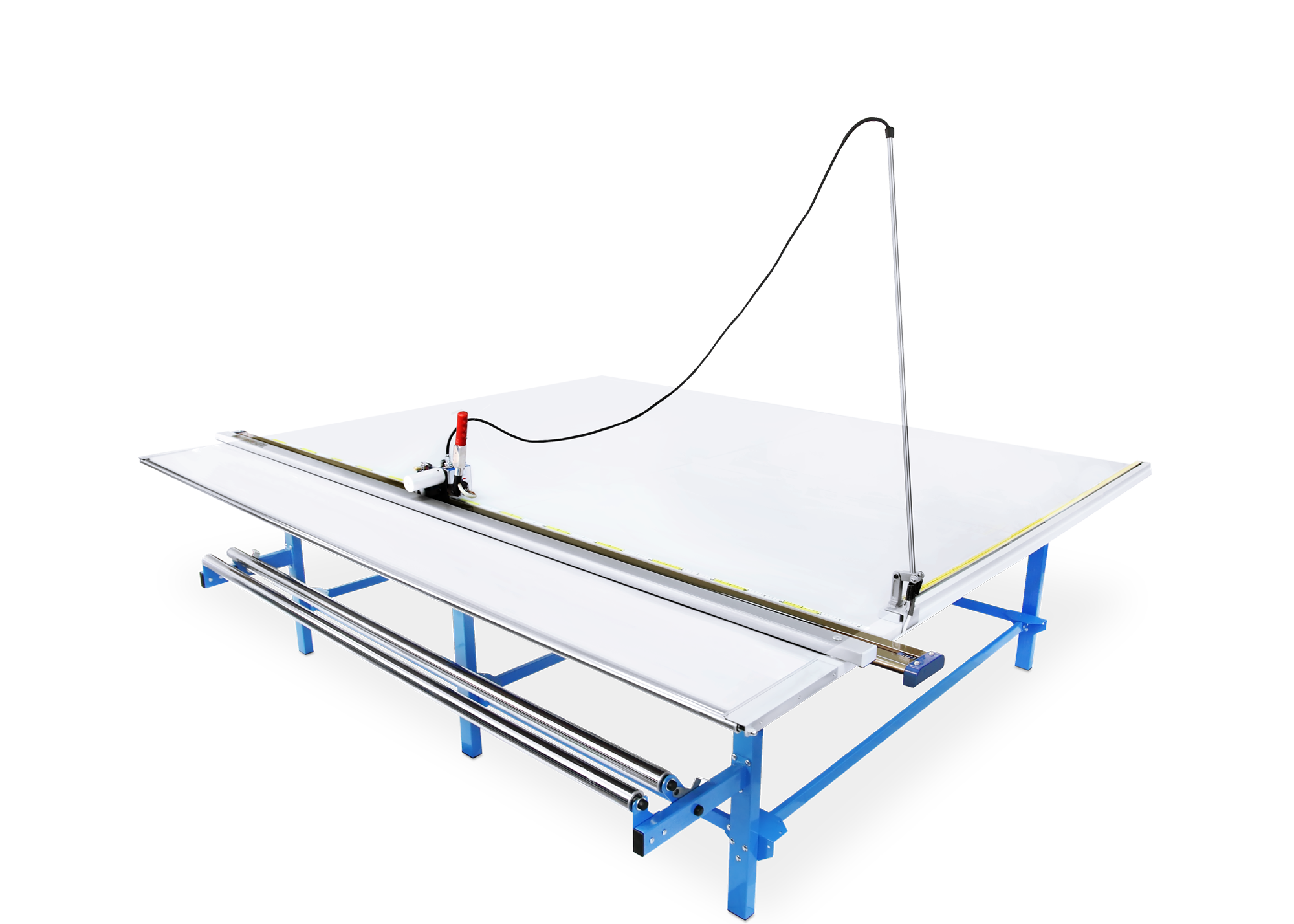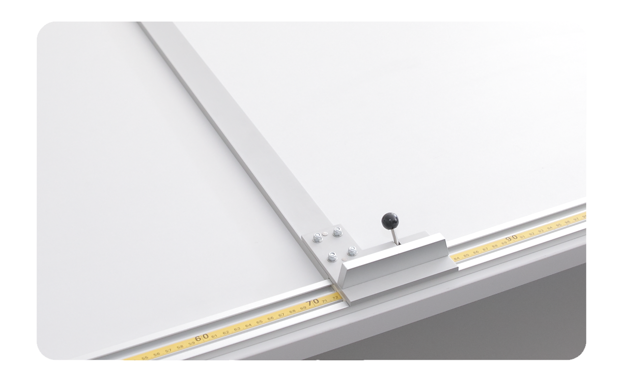 A precision scale strip runs along the table top as a reference edge for the fabric. It can be fitted with an angled sliding strip or a laser slider for smoother movement.