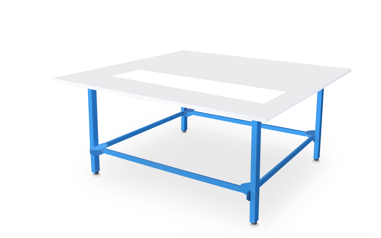 The thick 25 mm, edge-sealed tabletop resists warping and damage from daily industrial use.
